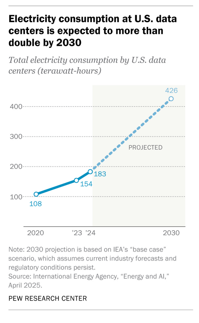 “Americans may see more widespread price hikes in coming years. One study from Carnegie Mellon University estimates that data centers and cryptocurrency mining could lead to an 8% increase in the average U.S. electricity bill by 2030, potentially exceeding 25% in the highest-demand markets of central and northern Virginia.”